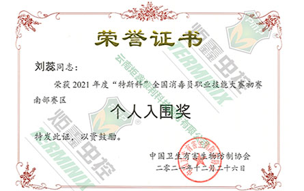 “特斯科”第一届全国消毒员职业技能大赛个人优秀奖